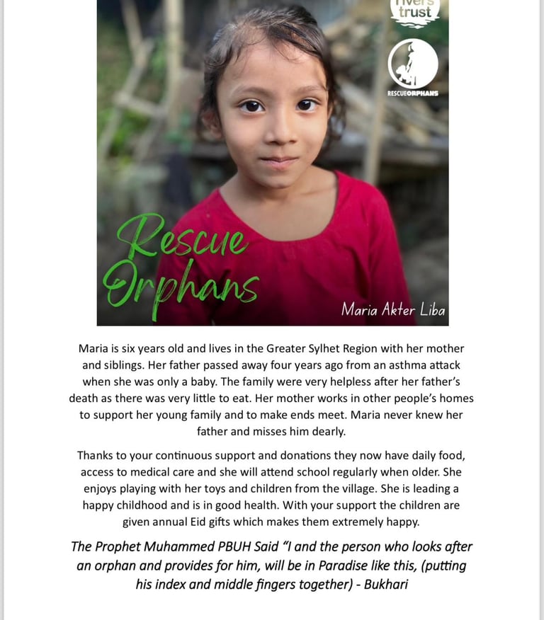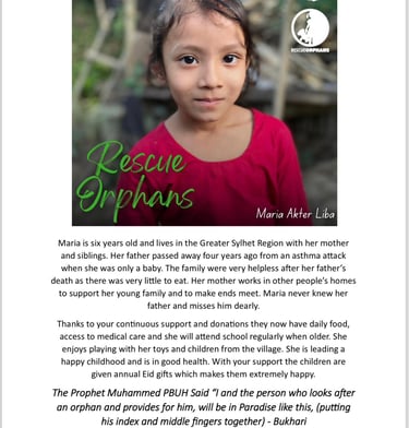 Description: Full sponsorship of a child/orphan for one year, covering essential needs such as food, education, and healthcare.