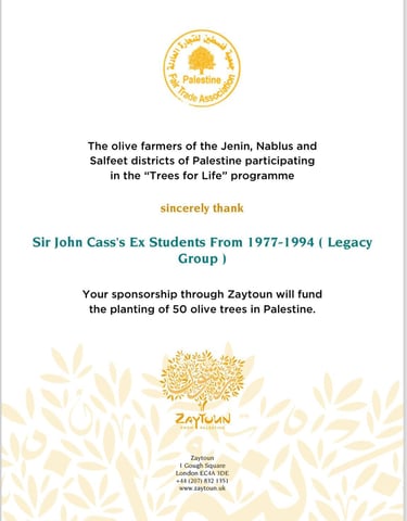 Description: Planting of 50 olive trees to promote sustainability and support local agricultural livelihoods.