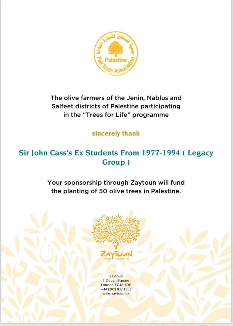 Description: Planting of 50 olive trees to promote sustainability and support local agricultural livelihoods.
