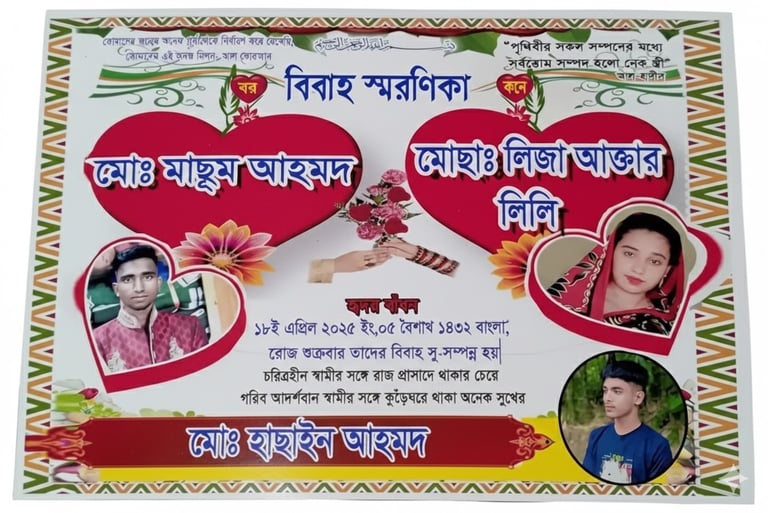 Description: Provided 10,000+ Taka to support wedding-related costs for aneedy family.